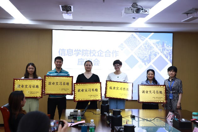 李建军院长感谢与会企业的诚挚建议,并对后期的合作表示期待与感谢。最后由学院副院长(主持行政工作)符刚为企业授牌“校企合作基地”,招生就业处卢彦处长为企业授牌“就业实习基地”,与会人员于明德楼前合影留念。
