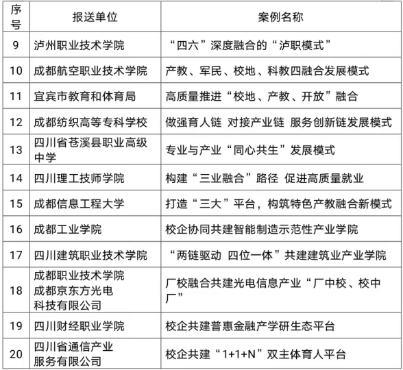 此次会议通报了全省职业教育产教融合工作情况:初步构建“专业+产业”“教学+研发”“培养+就业”“联盟+园区”的产教融合发展模式,努力推动职业教育“学校走进园区建、专业紧跟产业办、校长围绕企业转”,大力促进教育链、人才链和产业链、创新链深度融合。提出了下一步工作重点:加快对《四川省职业教育条例》修订颁布,制定省级职业教育“双师型”教师认定标准,推动省级产教融合示范项目建设,出台混合所有制办学的指导意见,推进产教融合型企业认证制度;深化校企合作,加大人才培养力度,推动职业教育集团(联盟)实体化运作,深化书证融通改革,开展各类相关服务;加强内涵建设,落实各项国家标准,鼓励增设紧缺专业,提升专业服务产业发展能力,指导职业学校和行业企业广泛开展各类产教融合协同育人项目,推进高职省级“双高计划”和中职“三名工程”等重大项目建设;完善促进技能人才队伍建设和产教融合的政策措施;加快推进重大平台建设,创新推动职业技能培训工作开展;实施技工教育质量提升工程,创新技工教育发展平台载体,建设一批技工教育和职业培训师资培训中心,打造一批技师学院和职业培训集团;加快推行“新八级工”制度,建立健全企校合作育人机制和体现技能价值为导向的技能人才薪酬分配制度等。