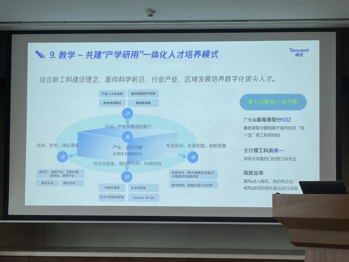 20日上午,调研组来到腾讯科技(深圳)有限公司,在腾讯高等教育架构师王才荣的带领下,参观了腾讯展厅,对接了专业数字化改造以及校企合作事宜。