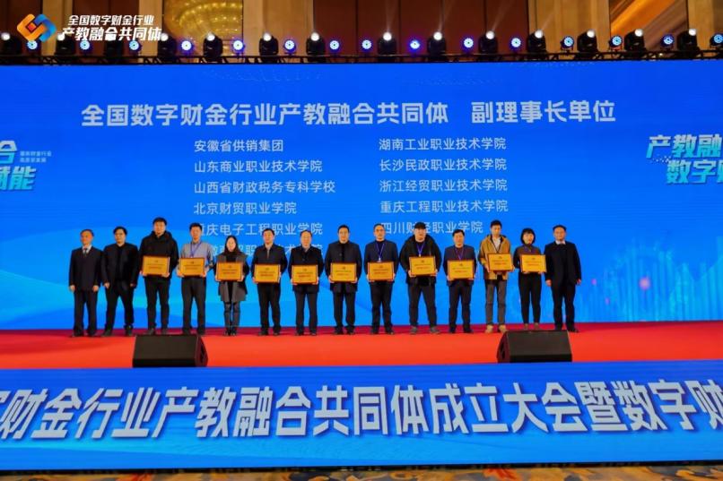 2024年1月13日,全国数字财金行业产教融合共同体成立大会暨数字财金产教融合发展论坛在安徽合肥成功举办。我院院长符刚受邀带队参会。经大会审议,我院担任共同体副理事长单位,对外合作处副处长(朱敏)代表学校接受授牌。