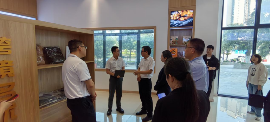 到了电商产业园,园区运营总经理王林向大家介绍了泸县电子商务自2015年以来的发展历程以及园区运营和泸县电商产业的整体情况,带领大家参观了“泸县造”特产展示展销馆及跨境电销展示展销区、电商体验中心、供应链选品中心以及企业直播间等。符院表示,基地配套完善,基础良好,可以与我校高技能人才培养基地等优势互补,切实做好电商孵化基地的建设工作。