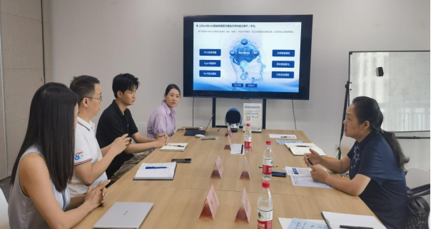 然后,校企双方在公司会议室举行了校企交流与合作座谈会。肖雪峰董事长在主持会议时表示,明途科技定位为一家专业的工作AI数智服务商,基于私有数据生成式AI应用,自主打造WorkBrain垂类模型,以AI智能体技术为基础,构建AI数字人云平台、具身智能终端、目标AI管理、行业数字大脑四大产品服务,为政企数字化转型提供数据、技术、应用的新引擎。教育市场部相关负责人汇报了公司在校园私域空间建设成果,重点展示了学生数字人、教师数字人、处室数字人、家长数字人等在学习管理、心理咨询、实训课程、生活管理、招生就业、教案辅助、校园宣传等方面的重要应用场景,同时分享了公司与四川轻化工大学、西华大学等高校在数字人赋能学校人才培养与学校治理等方面的典型案例。