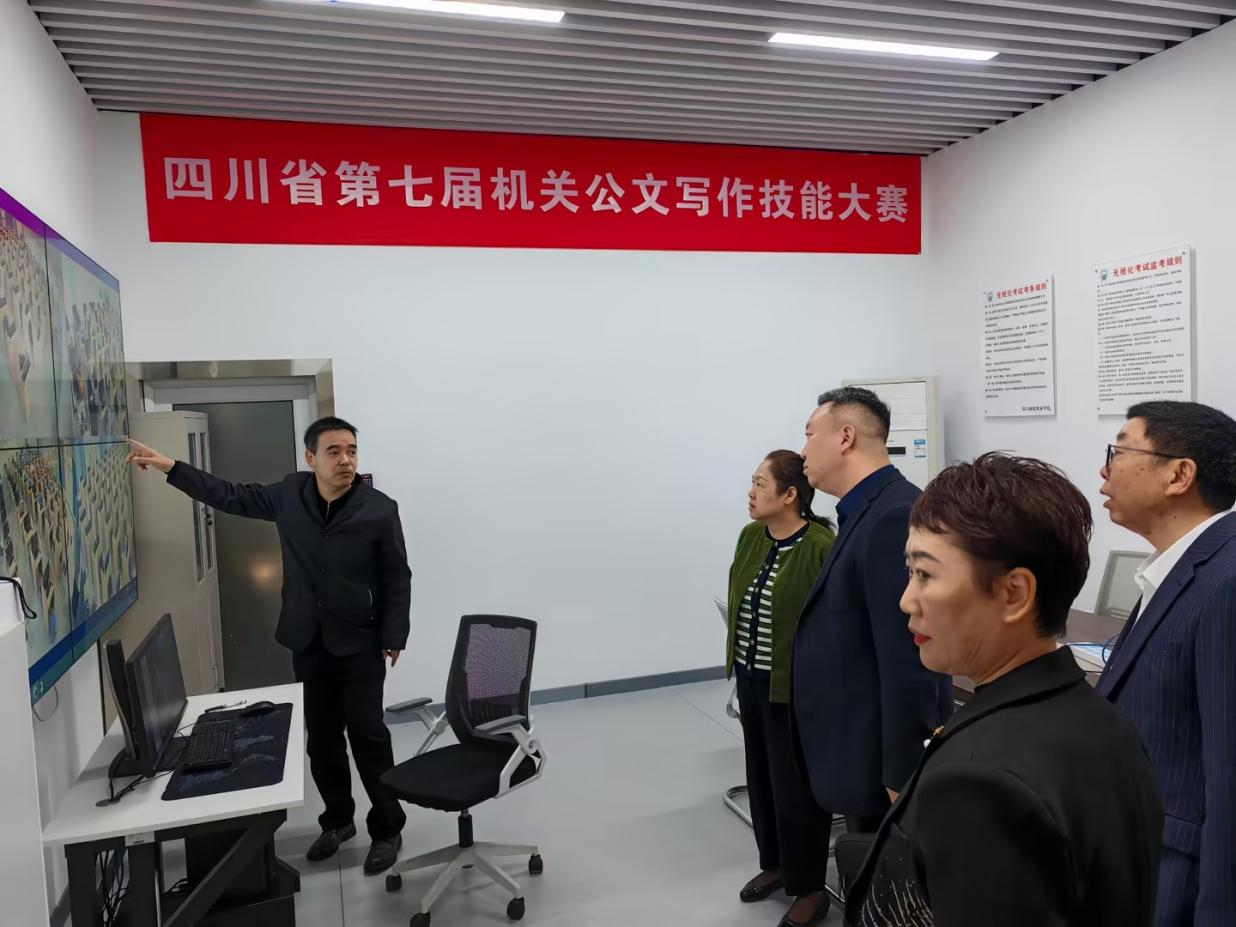 最后,在张华书记的陪同下,郭首军一行参观了学院无纸化标准考场,对考场设施、考试流程等进行了详细了解。