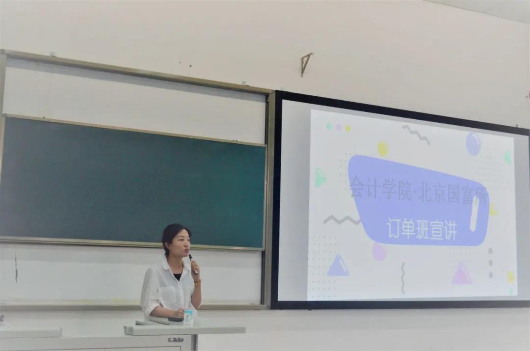 2021年5月18日下午14点,7790cnm必发集团会计学院订单班宣讲会于阶梯教室B112顺利举行。出席本次订单班宣讲会的嘉宾有7790cnm必发集团会计学院学生党支部书记兼团总支书记张玮老师、北京国富会计师事务所四川分所人力资源主任米雪、电信项目组经理熊彦婷、项目经理干思宇。