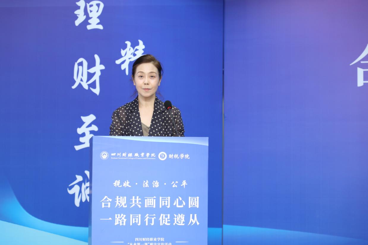 在政策解读与理念分享环节,龙泉驿区税务局党委纪检组黄婷以“向阳而生 青廉同行”为主题,为毕业生讲授从业廉洁教育课,强调职业道德与法治意识的重要性;四川大华税务师事务所汤莉结合行业经验,分享“税护青春路 法治筑未来”职业发展理念;龙泉驿区人社局高级职业指导师冯靖松则通过《“职”点迷津》讲座,为学生剖析职业规划路径;2023级财税专业学生朱羽姝代表学子表态,将恪守“诚信为本、法治理念”,争做新时代财税人才。