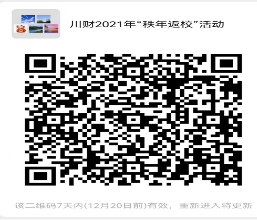 三、扫描下方二维码,加入川财2021年“秩年返校”微信群,及时了解本次活动最新通知。