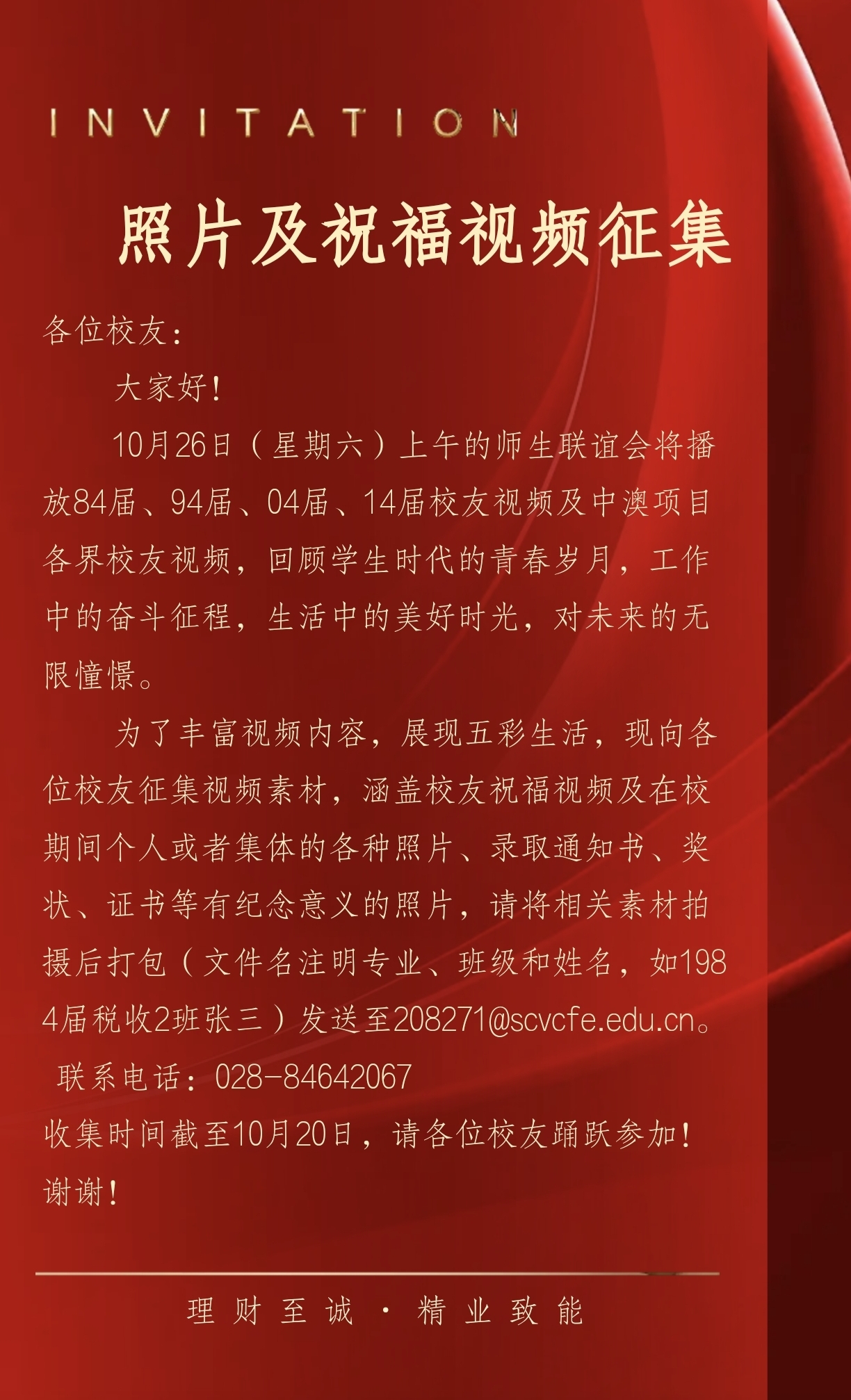 第二届校友“秩年返校”活动照片及祝福视频征集