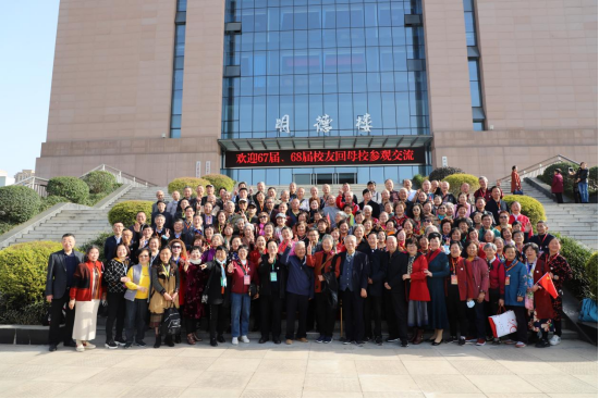 3月28日上午9时,1967、1968届241名老校友乘坐的大巴车缓缓驶进校园,张华书记、符刚副院长等校领导和各职能处室领导、老师及学生志愿者纷纷走上前去,握手拥抱,热情地迎接老校友们的到来。在明德楼前,学校领导与老校友们合影留念。