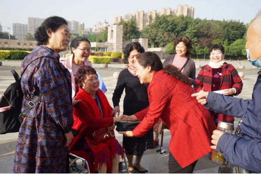 随后,学院大学生艺术团舞蹈队的姑娘们为大家带来了古典舞《笑纳》;68届财1班沈仁学带来独唱《船工号子》,向大家展示了74岁校友的精、气、神!财院锅庄舞协会的藏族小伙、姑娘们,带着校友们共同跳起了欢快的锅庄,把联欢活动推向高潮。