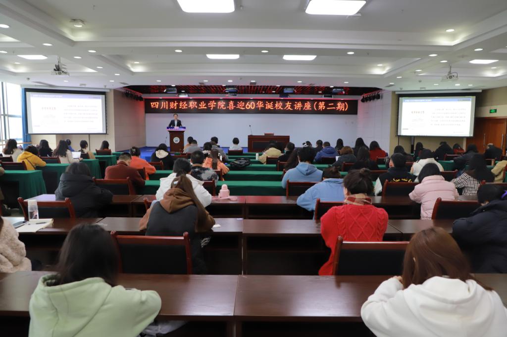 调研交流后,何锦峰在明德楼308会议室举办了主题为《“双碳”背景下的碳市场、绿色金融及市场机遇》的讲座。线下250余名学生、40余位教师及线上四川财经职业教育联盟200多名师生,合计500余人参加本次讲座,本次讲座由朱敏主持。
