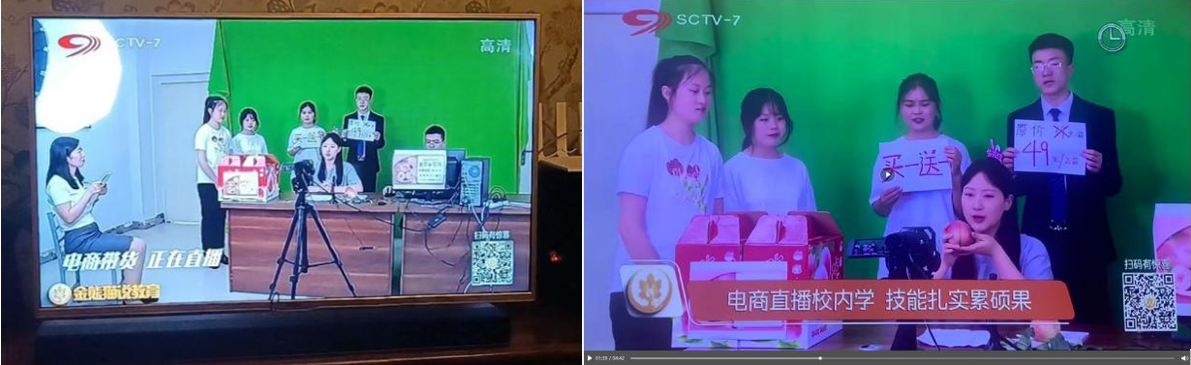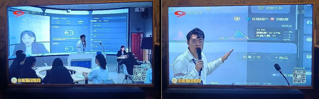 2022年6月13日晚8点,四川广播电视台妇女儿童频道SCTV-7《金熊猫说教育》栏目职业教育专题介绍了我校电子商务专业。学院在电子商务人才培养过程中,以电商人才培养为起点、以乡村振兴为载体、以直播和短视频电商为抓手,传统电商与新媒体电商相结合的专业教学开展方式。