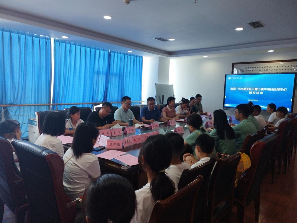 2023年7月6日,广元市朝天区云雾山镇中坝村博雅“成都行”研学交流座谈会在明德楼713会议室举行。学院院长符刚及相关领导,驻村干部董中垒、高菁,家长代表,学生代表等二十余人参加座谈。座谈会由对外合作处副处长付纬航主持。