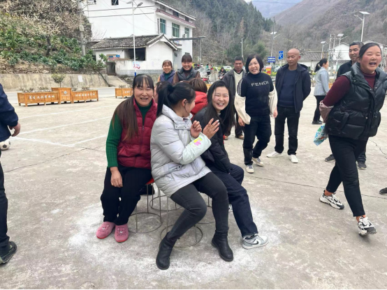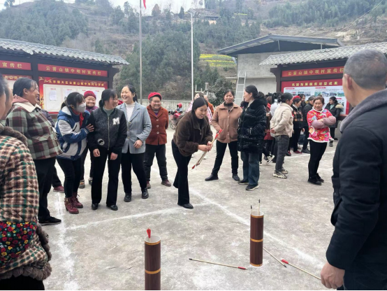 在讲座结束后,开展了趣味运动会,包括“套圈、投壶、赶猪、抢凳子、踢毽子”等活动,村民们积极参加、每个活动后面都排起了长队,其中套圈、投壶和抢凳子成为了明星节目,现场欢声笑语一片,气氛热烈。村民们纷纷表示,开展“三八”节活动,非常有意思,大家都很乐于参加这样的活动,既能活跃氛围又能得到奖品。