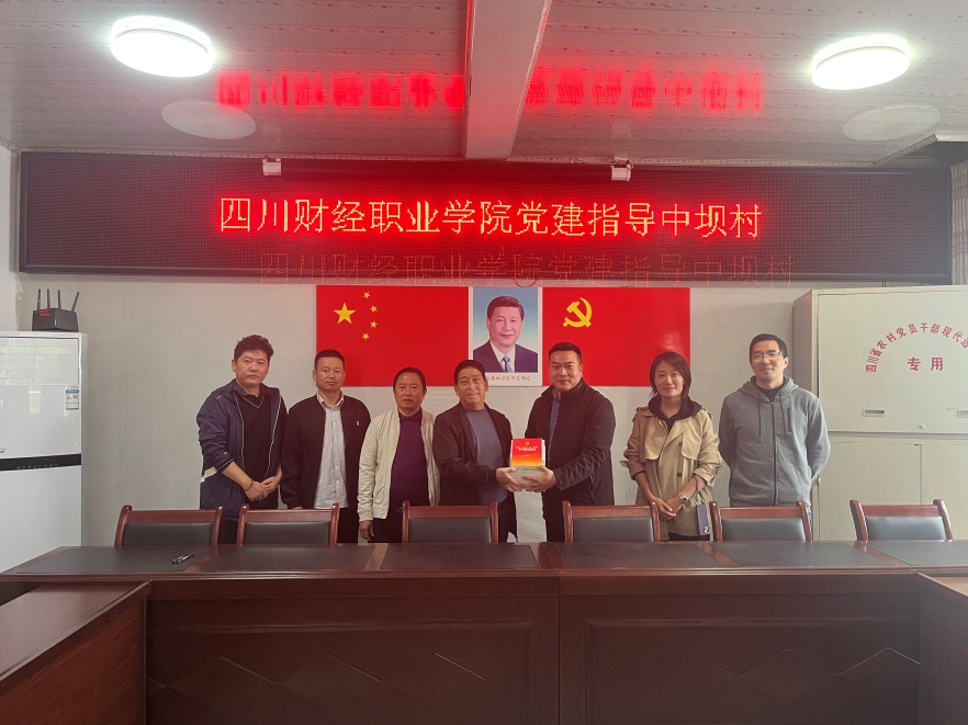 学院组织人事部副部长饶明全,对中坝村基层党建工作给予指导工作并赠与党务书籍。他希望:财院驻村工作队党员同志,要深入学习和践行习近平新时代中国特色社会主义思想,学习贯彻党的二十届三中全会精神;推动加强村“两委”班子建设、促进担当作为,帮助培育后备力量,发展年轻党员,吸引各类人才;推动加强党支部标准化规范化建设,严格党的组织生活,加强党员教育管理监督,充分发挥党组织和党员作用。充分发挥基层党组织战斗堡垒作用,增强自身的凝聚力和吸引力,促进村级集体经济、乡村振兴等工作取得新突破。