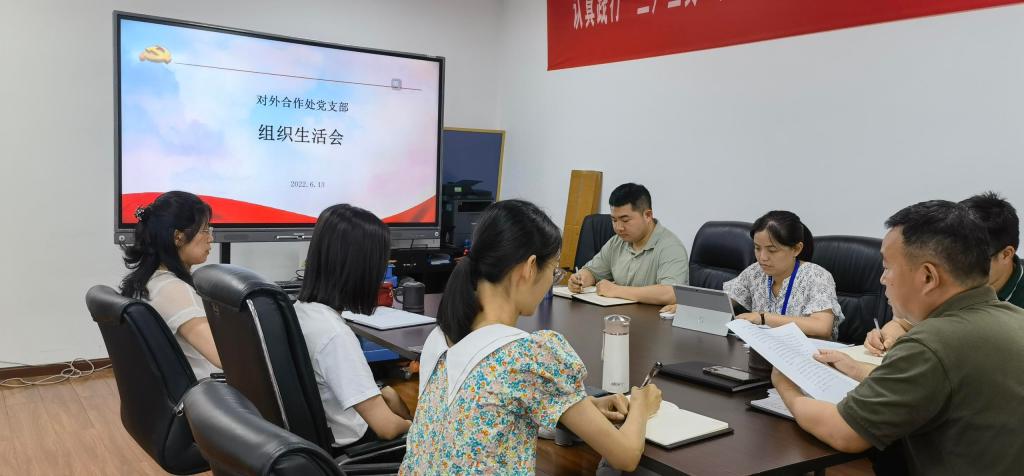 为及时传达学习习近平同志来川视察重要指示精神和中国共产党四川省第十二次代表大会精神,2022年6月13日上午,对外合作处党支部召开组织生活会,会议由对外合作处党支部书记叶剑明主持。