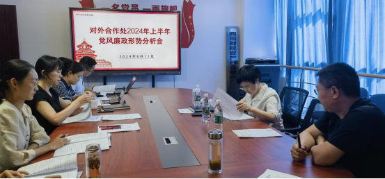 对外合作处副处长(主持工作)朱敏对当前部门党风廉政建设的形势进行了详细报告。她指出部门在党风廉政建设方面取得了显著成效,但也面临着不少挑战和问题。报告强调了加强监督、严格纪律的必要性,以及下一步工作的具体打算。