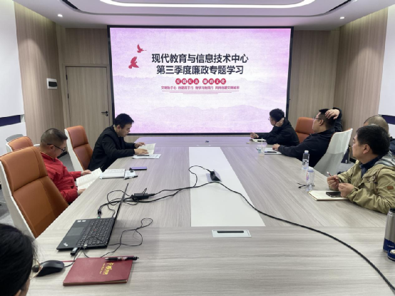 为贯彻落实全面从严治党和党风廉政建设要求,10月23日下午14:30,信息中心党支部在A栋A109会议室开展了2025年第三季度党员干部廉政专题学习,本次学习由党支部书记甘立明同志主持。