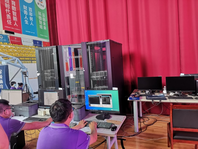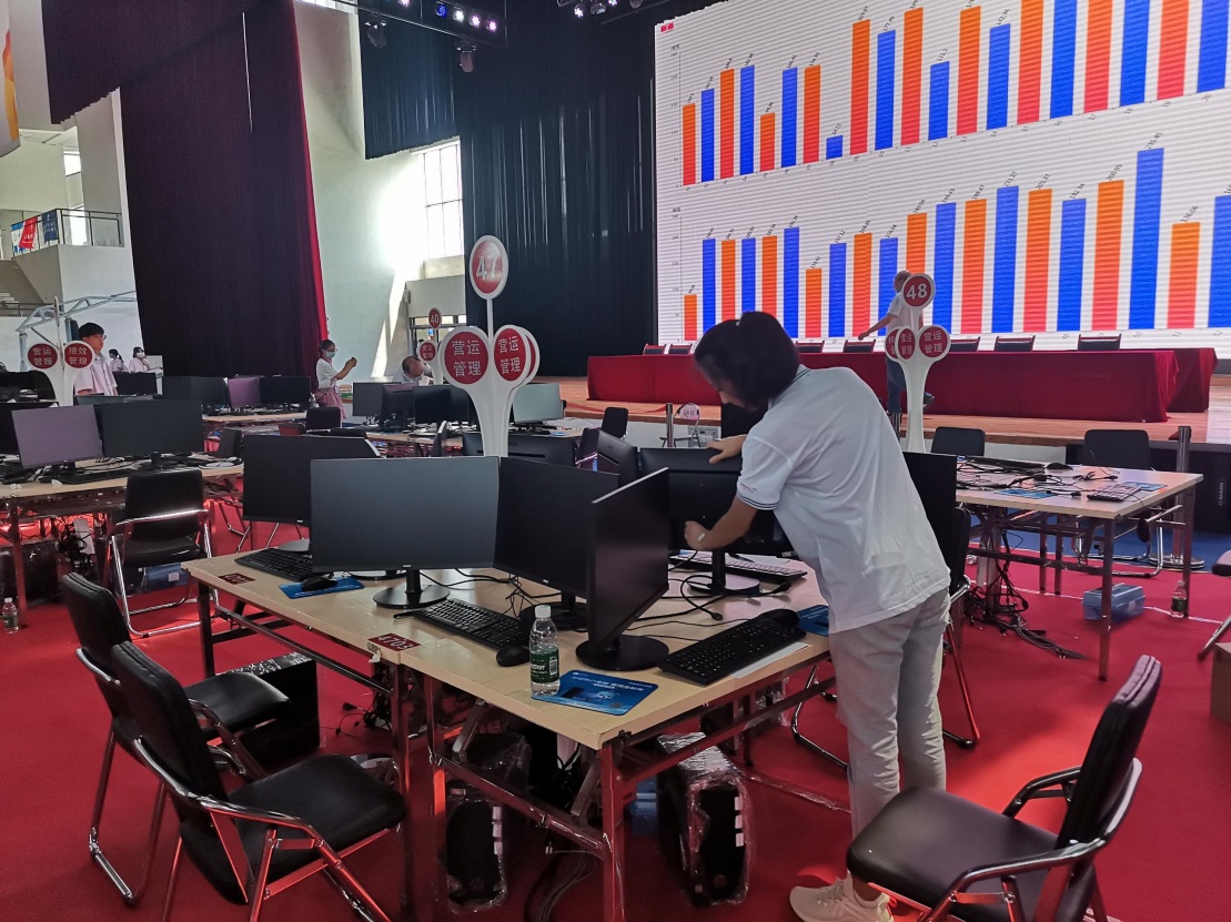信息技术中心针对大赛制定工作任务清单,比赛用机的软件、硬件、赛用服务器的安装调试,赛场局域网的搭建调试,赛场LED屏及音响的调试与操作,摄影摄像,保密室监控安装等一系列保障工作的技术服务细化工作职责,落实工作细节,有效确保各项赛事、赛务工作。在备赛期间,信息技术中心参加保障工作的员工积极响应学校党政号召,抗高温、战酷暑,加班加点,保障大赛的顺利举办。