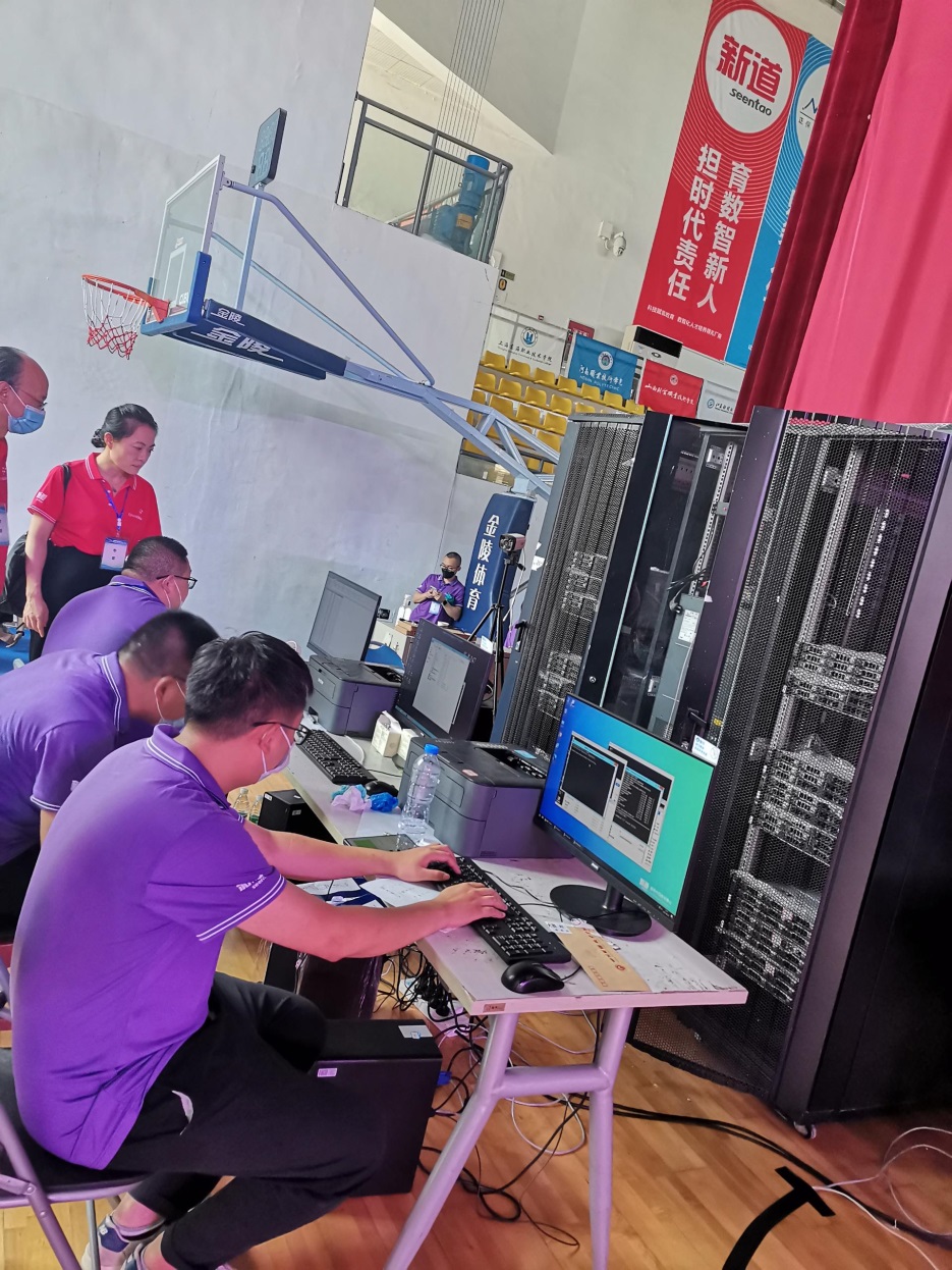 现代教育与信息技术中心在今年暑假7月20号就开始了大赛的各项工作准备,主要负责大赛出题场和赛场的技术支持,包括比赛用机的软件、硬件、赛用服务器的安装调试,赛场局域网的搭建调试,赛场LED屏及音响的调试与操作,摄影摄像,保密室监控安装等一系列保障工作,确保大赛的顺利完成。