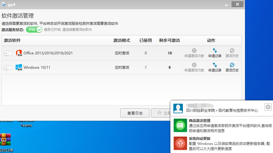 2) 登录成功后,软件自动弹出商品激活管理窗口(Windows和Office默认各分配10次激活次数)