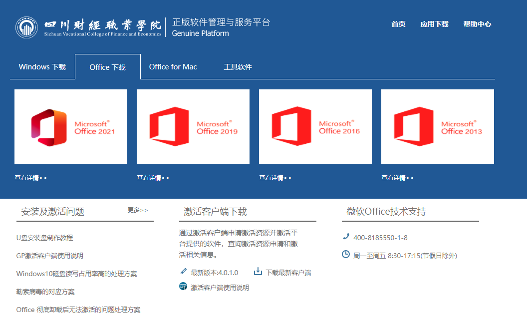 如安装客户端后office软件激活不成功,请卸载电脑中原Office软件,根据以下步骤下载正版软件
