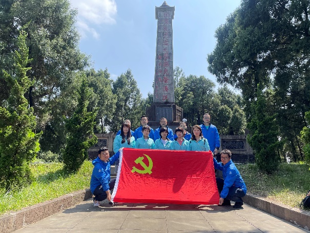 5月8日下午14时,全体党员在红军山脚下集中整队出发,徒步经过红军亭——机枪阵地——红军大院——红军山石刻碑林——烈士陵园,最终到达徐帅题词纪念碑。