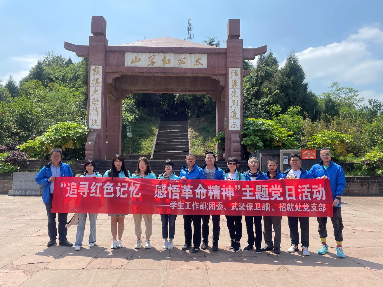 为庆祝建党100周年,弘扬红色革命精神,使支部党员同志更好的体验党的发展历程,锻炼党员吃苦耐劳,艰苦奋斗的精神,5月8日学生工作部(团委、武装保卫部)、招生就业处党支部组织12名党员前往广元太公红军山党性教育基地开展“重走长征路活动”。