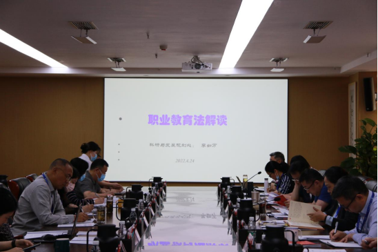 为贯彻落实新修订的《中华人民共和国职业教育法》(以下简称《职教法》),4月24日上午,我院在明德楼913会议室召开党委理论中心组学习(扩大)会,专题学习新修订的《职教法》。党委书记张华主持会议并讲话。