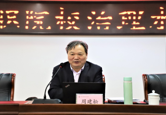 周建松书记从治理体系和能力建设的重要性、构建与完善高职院校治理体系、健全学校领导体制机制、加强校企合作机制建设、推进教授治学和民主管理、深化校院(系)两级管理、夯实院(系)基层党组织、大力加强中层干部队伍建设、加速打造高水平专业(群)、领悟双高计划中的学校治理要求、建立健全学校建设发展的制度体系、提升学校治理能力的进一步思考等十二个方面向大家详细讲述了如何提升高职院校内部治理水平,强调高职院校治理体系建设要坚持党的领导这一政治大前提,充分发挥党委领导下校长负责制的制度优势,有效利用院校两级管理体制优势,科学把握高教性和职教性的关系,正确处理政治权力、行政权力、学术权力、民主权力、发展权力的关系,谋求最大公约数,画出最大同心圆,不断提高办学治校水平、人才培养质量和服务社会能力。