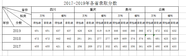 2017-2019年各省录取分数线