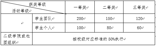 注:1.学校对参加活动获奖学生进行奖励,奖励设置标准为:一等奖2名,二等奖3名,三等奖5名;人数较多的原则上不超过参加决赛队伍(作品)总数的5%8%10% 2.参与学生人数可通过签到表或系统信息认证。
