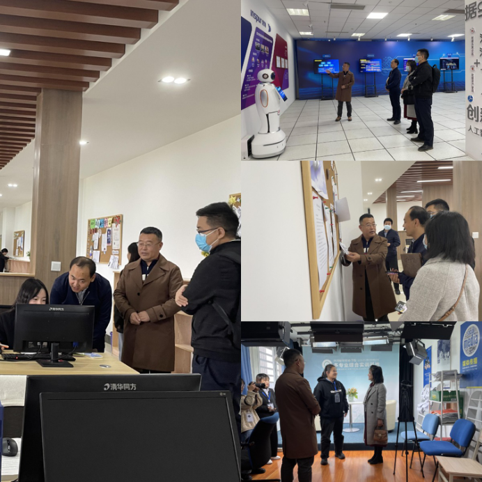 会后,评审调研小组走访了数智财经认知中心、多专业综合实训基地,并现场与学生进行了交流,更深入地了解了学校申报“示范实践基地”的资源优势、科技优势。