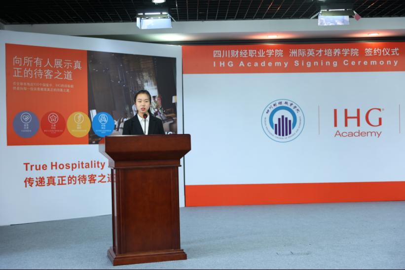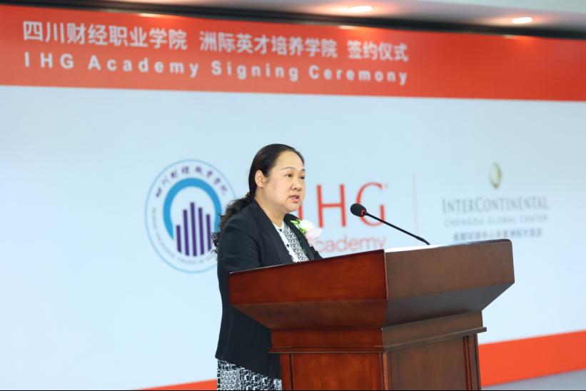 首先,学院党委书记张华致辞。她介绍了学院办学历史和发展历程,指出“产教融合、校企合作是职业教育的基本办学模式,是办好职业教育的关键所在。”学院和洲际酒店集团作为职业教育和酒店行业的佼佼者,可以通过校企合作,强强联合,构建产教融合、工学结合、知行合一的共同育人机制,实现专业共建、资源共用、人才共育、成果共享的合作目标。