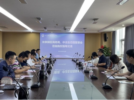 2021年9月18日下午,龙泉驿区商务局、中法生态园管委会一行到学院指导交流。龙泉驿区商务局局长王丰华、中法生态园管委会国际合作和投资促进部副部长陈俊君、副部长王聪,龙泉驿区商务局服务业投资促进中心副主任李菲、柯赛男,学院副院长符刚(主持行政工作),党委委员、副院长钟用出席交流会,对外合作处、基建办公室、科研与发展规划处、继续教育学院等相关职能部门负责人参加座谈交流,会议由钟用主持。