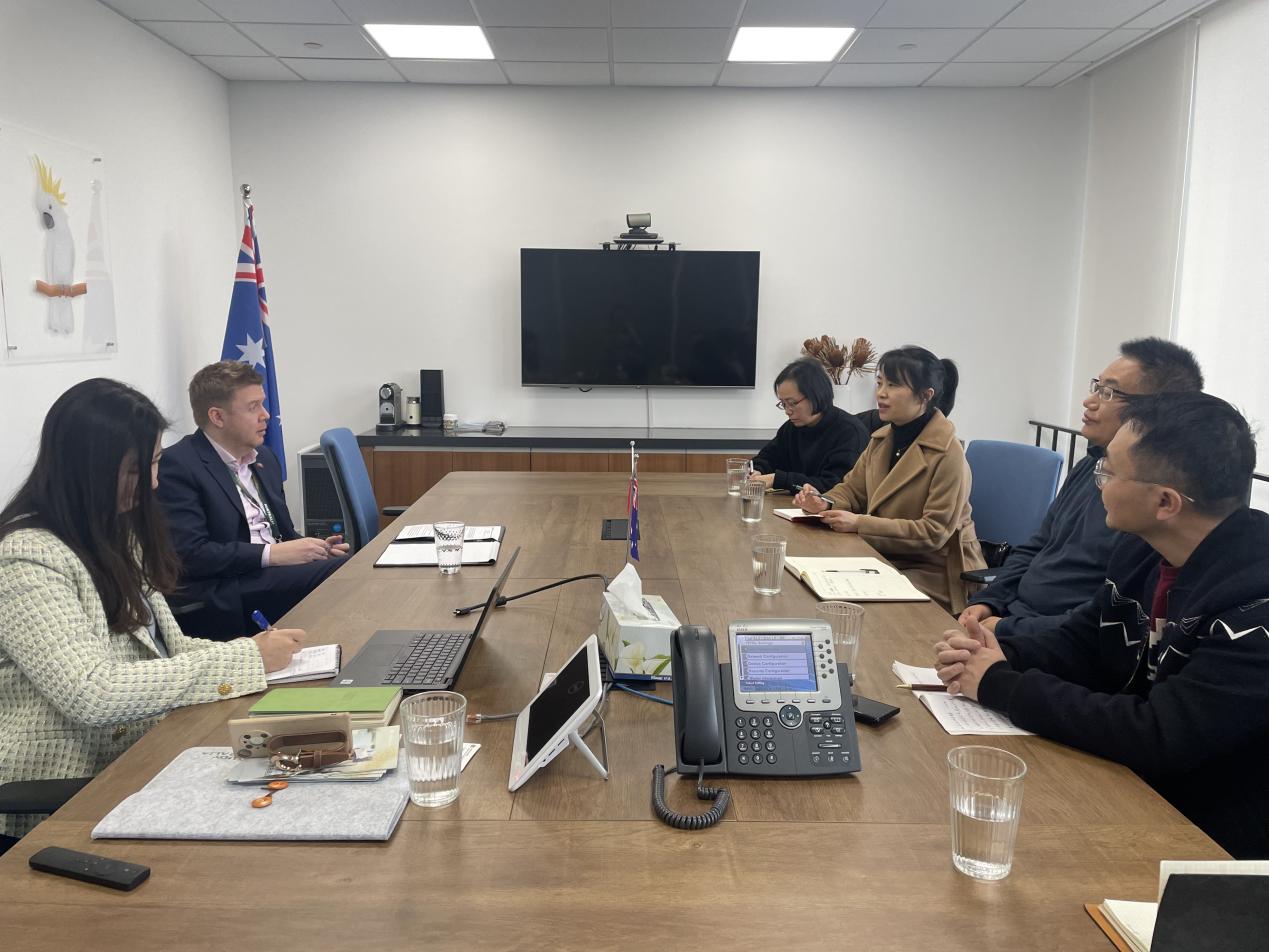 为进一步推进中澳合作办学项目高质量发展,提升双边合作水平,2023年1月17日下午,对外合作处副处长(主持工作)朱敏、工商管理学院陈世平博士、工商管理学院副院长梁小晓一行赴澳大利亚贸易投资委员会座谈交流。