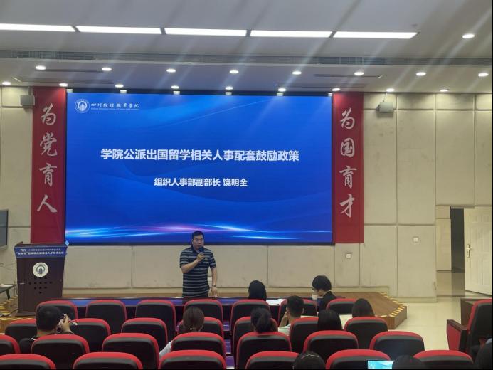 组织人事部副部长饶明全介绍学院公派出国留学相关人事配套鼓励政策。
