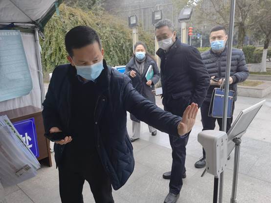 关民军巡视员一行在学院门岗检查进出口登记、临时隔离点情况,在电梯密闭空间检查重点区域消杀情况,询问学院师生出川离蓉数据、教师公寓人员台账、开学返校安排等相关问题。关民军巡视员对学院疫情防控工作表示肯定,并要求学院做好寒假期间值班值守,在门岗处就近完善临时隔离点,严格按照属地相关要求做好学院疫情防控工作,完善学院开学返校预案。