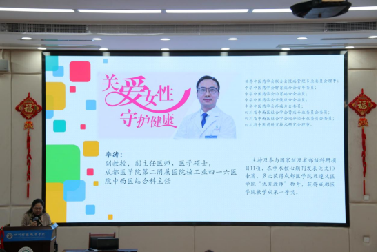 “三八”国际劳动妇女节到来之际,为增强我院女性教职工健康意识和自我保健水平,3月8日下午,我院在至诚楼213教室举办了以“关爱女性,守护健康”为主题的知识讲座,诚邀世界中医药学会联合会慢病管理专业委员会理事、成都医学院第二附属医院核工业四一六医院中西医结合科主任李涛副教授授课,讲座线上线下同步进行。学院党委书记张华参加讲座并致辞,各二级学院女性教职工聆听讲座。