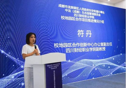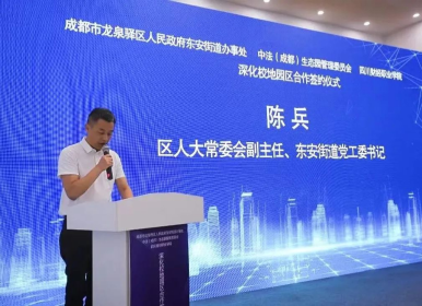 学院副院长(主持行政工作)符刚,东安街道党工委副书记、办事处主任吴震,龙泉驿区外商投促中心副主任(中法生态园管委会班子成员)杜成立出席仪式并签署校地园区合作协议书。区委组织部、区委社治委、区教育局相关领导受邀出席仪式,见证合作签约。学院党委委员、副院长罗潇及部分中层干部,东安街道党政领导班子成员,中法(成都)生态园管理委员会领导班子成员参加仪式。