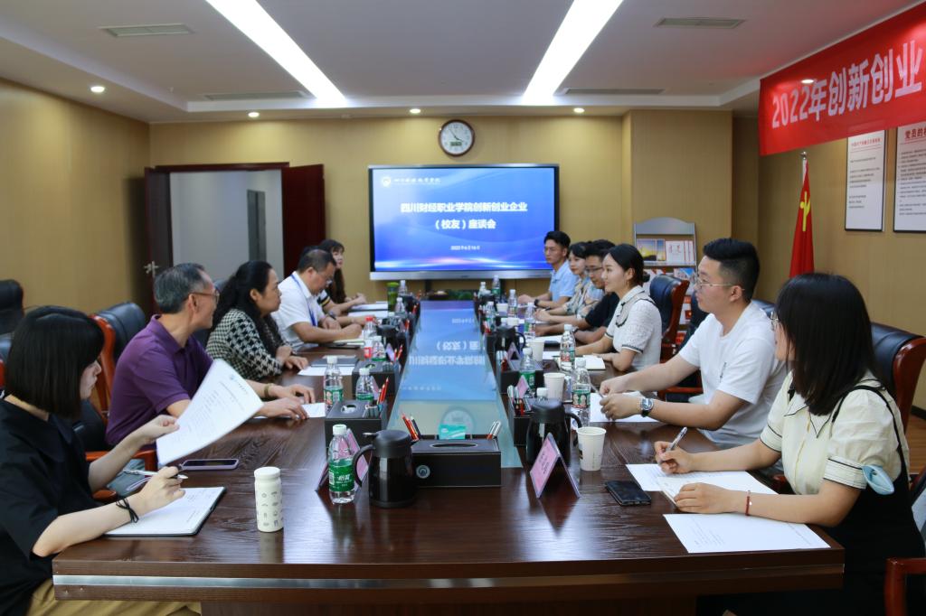 优秀校友代表、四川财院资产经营管理有限公司总经理黄睿、招生就业处就业创业科科长李焱茹、大学生创新创业中心老师陈曦等参加座谈会。