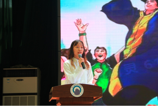 教师代表工商管理学院纪怡璠勉励毕业生们,要坚持梦想,努力奋斗,乘着梦想的翅膀,踏上为梦想而奋斗的旅程,用奋斗铸就辉煌;要迎难而上,勇往直前,一步一个脚印踏实向前。