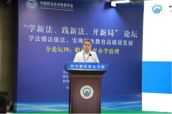 6月30日由中国职业技术教育学会主办的“学新法、践新法、开新局”论坛拉开帷幕,共设一个主论坛六个分论坛,其中“职业教育办学治理”分论坛在我院明德楼308报告厅成功举办,川内外十余名行业专家、学者、领导在分论坛发言,分享学习宣传和贯彻实施新职业教育法的有益经验,探讨交流深化全面依法治教,探索职业教育办学治理的新模式、新方法。