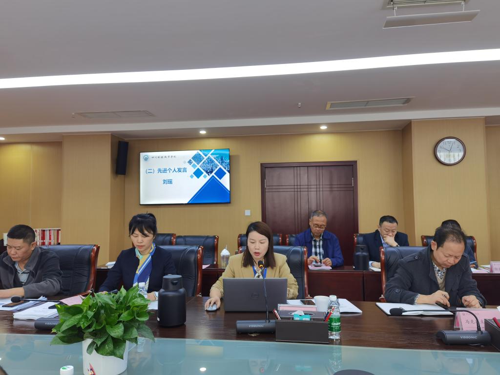 在“对标竞进 争创一流”活动中被四川省委教育工委、四川省教育厅通报表扬的李代俊、刘瑶、高淑芳三位先进个人分别发言,主要谈了各自在专业群建设、人才培养、师资队伍发展、提升科研服务、社会服务等方面的措施举措、取得成效及下一步工作打算。