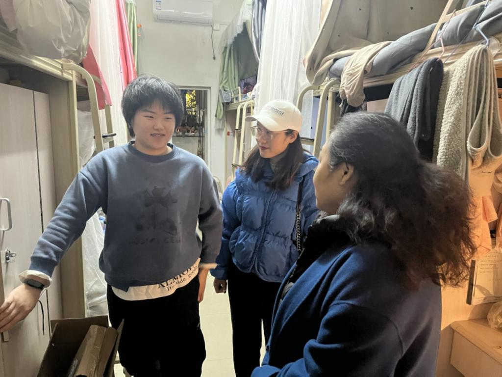 2月17日晚,学院党委书记张华深入学生社区,走访看望新学期返校学生,察看听取学生社区建设情况,与值班辅导员亲切交流,传达学院党委对师生们的关心和关爱。学生工作部负责人,值班干部陪同走访。