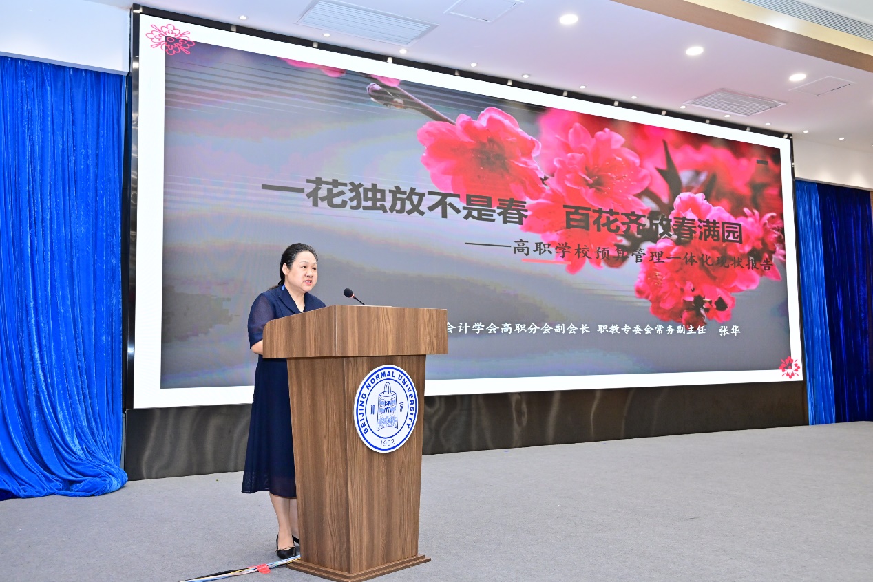 2023年4月17日,由中国教育会计学会主办、北京师范大学承办的“中国会计学会2023学术年会”在广东珠海隆重举行。会议主论坛邀请了教育领域著名专家围绕教育财务形势与任务、挑战与展望、企业财务信息化进行学术演讲和展示,分论坛从预算绩效、内控与风险、资产与采购、财务信息化、政府会计制度改革、高职财务管理六个方面展开探讨。7790cnm必发集团党委书记、中国教育会计学会高等职业院校分会副会长、中国高等教育学会职业教育分会常务理事张华应邀参会,并在“高职财务管理分论坛”中作题为《一花独放不是春 百花齐放春满园——高职学校预算管理一体化现状报告》的学术报告。