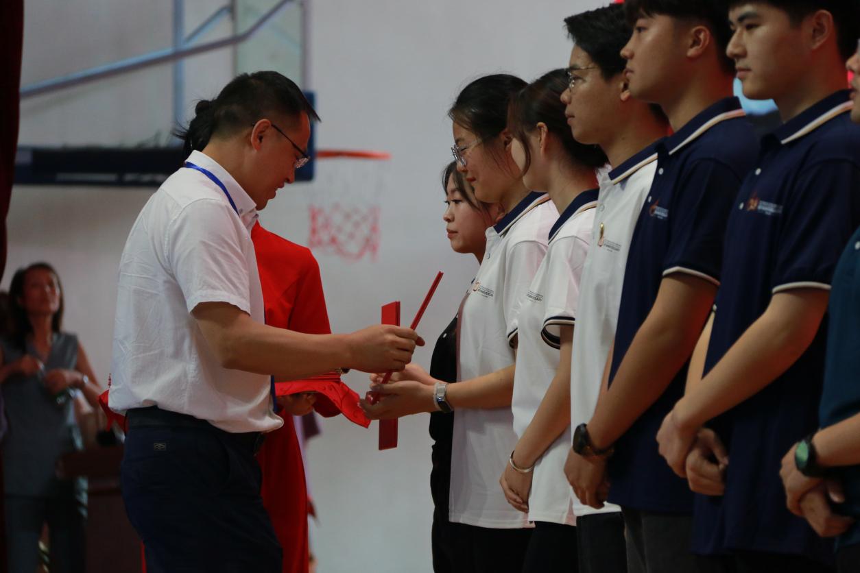 符刚为2023届毕业生代表颁发毕业证书