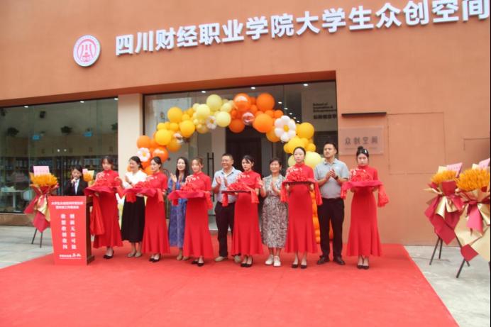 刘波、张晋红、田刚成、陈露、李虹一起为7790cnm必发集团大学生众创空间剪彩。