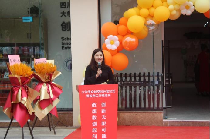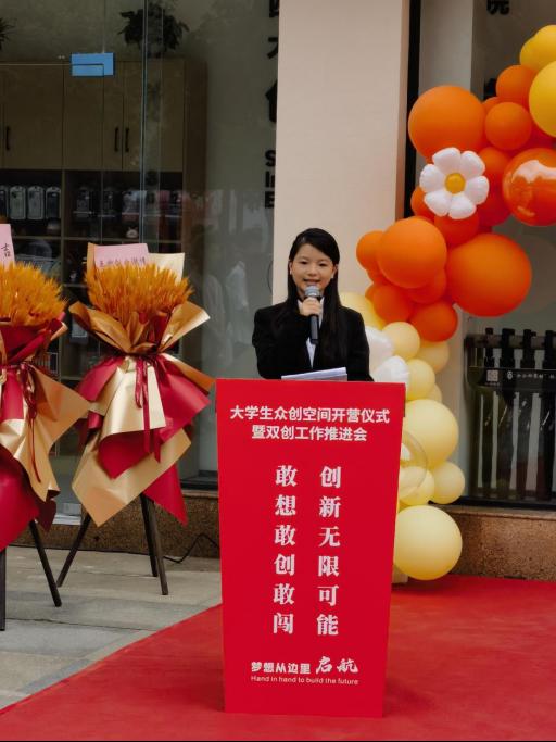 接着罗潇发表致辞,他表示科学的发展与国家盛衰荣辱息息相关,科技创新是引领发展的第一驱动力,是国家力量的核心支撑。学校大学生众创空间的建成和启用,是学校一体化构建创新创业教育体系、持续提升大学生创新创业能力的又一有力实践成果,有助于进一步推动学校创新创业教育落到实处、起到实效,把院内科技项目快速转化,孵化成就大学生的创新创业梦想。他强调,要进一步加强众创空间管理,持续加大对大学生创新创业的支持力度,努力打造自由、开放、共享的创新创业平台,持续深化创新创业教育改革,以高质量创新创业教育提升人才培养质量。