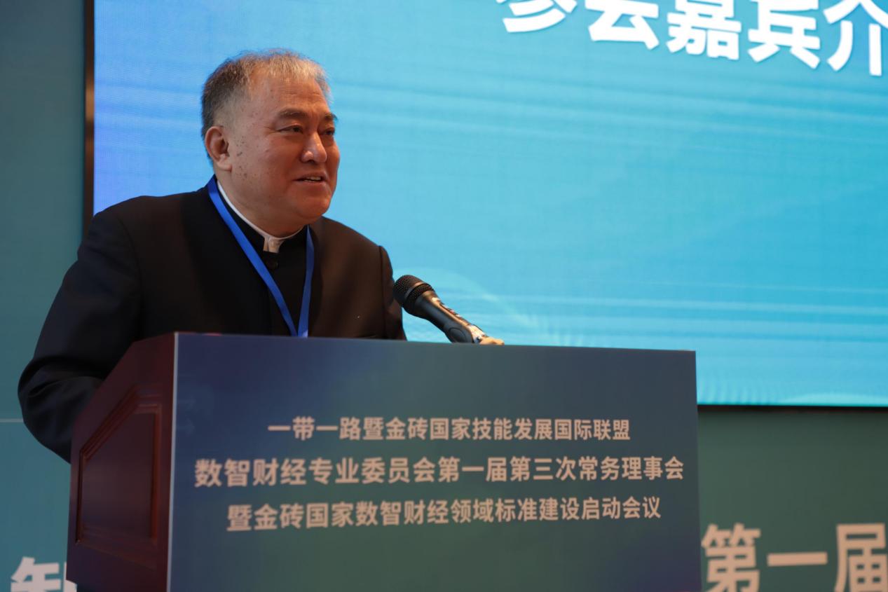 厦门市金砖未来技能发展与技术创新研究院副院长明士斌以《以标准引领金砖+教育》为题作发言报告。他详细介绍了一带一路暨金砖国家技能发展国际联盟2023年开展金砖国际交流活动的有关情况、未来技能研究项目及金砖国家标准建设的相关内容。