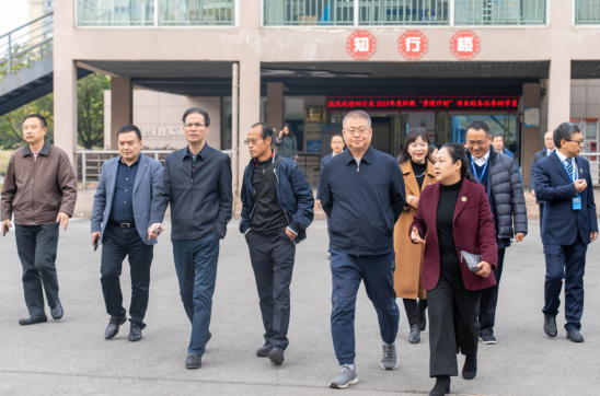 12月3日上午,四川省“双高计划”中期绩效评价专家组成员,中国职业技术教育学会副会长、北京市教育督导学会副会长孙善学,江苏理工学院职业教育研究院院长、中国式职业教育现代化研究中心主任庄西真,中国职业技术教育学会副会长、原浙江机电职业技术学院院长丁金昌,四川工商学院党委书记阎开印,重庆电子工程职业学院党委副书记、院长聂强,成都工业学院原副校长、党委常委陈传伟,成都市原财政局科教与文化处处长、高级会计师段为国,成都大学商学院教授王积慧,四川省教育厅职业教育处王诗倩,四川省教育评估院何苗苗一行到我校开展实地评价。学校党委书记张华、院长符刚,党委委员、副院长钟用、罗潇、肖兆飞,“双高计划”各项目负责人及联络员,相关部门、二级学院负责人参加了此次考察评价活动。